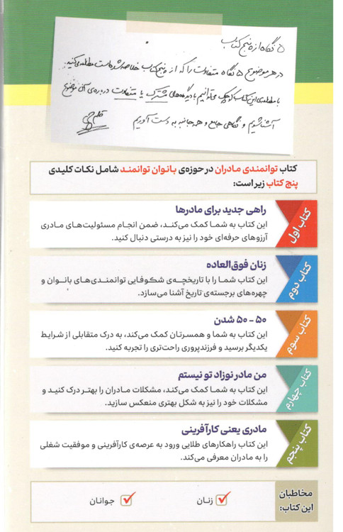 کتاب توانمندی مادران در حوزه ی بانوان توانمند شامل نکات کلیدی پنج کتاب زیر است: