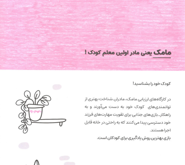 کتاب حاضر که با موضوع تقویت توانمندی های پایه ای کودکان بالاتر از چهار سال در حوزه ی هنر بر اساس منابع معتبری همچون کتاب های (ارزیابی مبتنی بر بازی فرارشته ای ) و امکانات بازی :برای کودکان سه تا شش سال طراحی شده و 56 بازی هدفمند را در خود جای داده و به شما کمک می کند به عنوان اولین و مهمترین معلم کودک خود به سادگی محیط مناسبی را در خانه برای ارتقای درک و شناخت کودک خود از جهان پیرامونی ایجاد کنید.