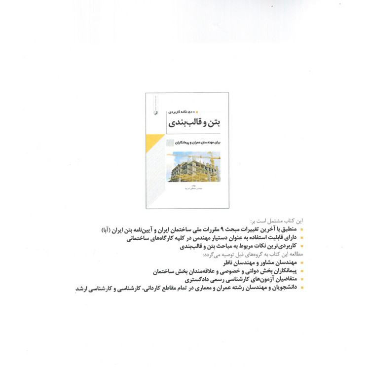 کتاب ۵۰۰ نکته برای مهندسان عمران و پیمانکاران همانطور که از نام آن برمیآید جنبه هندبوک داشته و به عنوان یک دستیار مهندس کاربرد دارد. و میتواند مورد استفاده برای تمامی مهندسان عمران و پیمانکاران قرار گیرد.