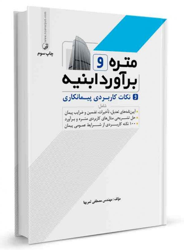 کتاب متره و برآورد و نکات کاربردی پیمانکاری با هدف آشنایی مهندسین به سرفصلهای درس متره و برآورد تهیه شده است. در این کتاب سعی شده است راجع به هر یک از فصول ۲۸ گانه فهرست بهای ابنیه مثال تشریحی به همراه نقشهها و جداول مربوطه گنجانده شود. و از این لحاظ برای علاقهمندان به امر متره و مهندسان مترور میتواند مفید باشد. کتاب متره و برآورد ابنیه و نکات کاربردی پیمانکاری شامل آییننامههای تعدیل، تاخیرات، تضمین و ضرایب پیمان نیز میباشد.